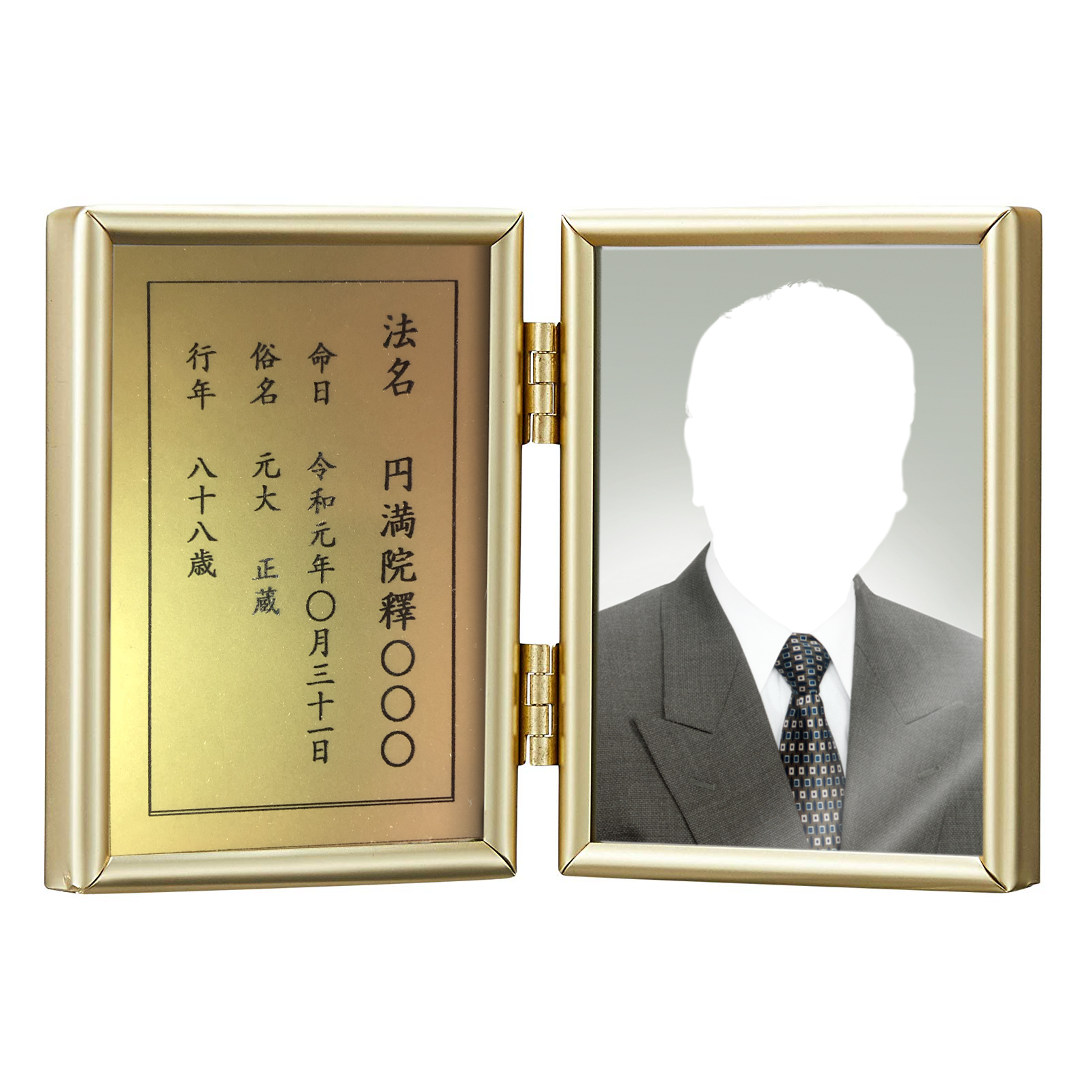 名入れ遺影名刺サイズ2面メタルスタンドゴールド